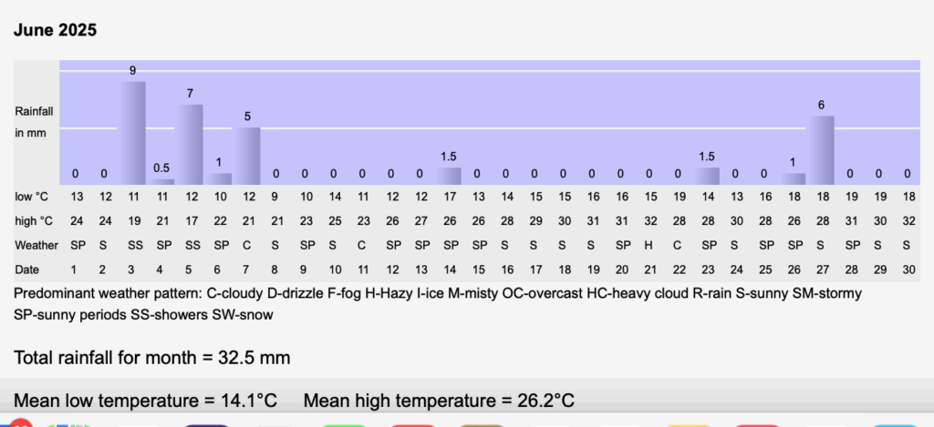 This month was very sunny, with the lowest rainfall for 12 years.